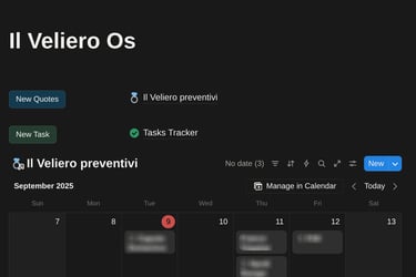 It is a tool that aims to automate many aspects of Il Veliero's activities, from budget tracking to creating quotes for clients. On the Home page, we find two buttons to create new quotes to send to our customers and to create new tasks for our internal team. When you click on one of these buttons, you have to complete a form with all the necessary information in order to get the job done.